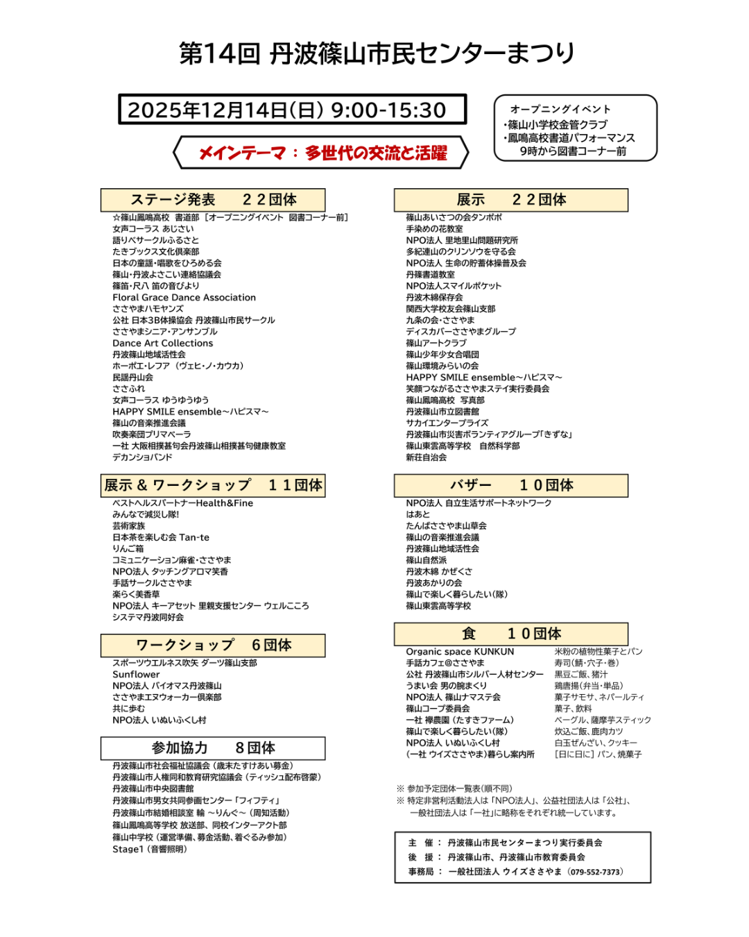 第14回 丹波篠山市民センターまつり 12/14 開催