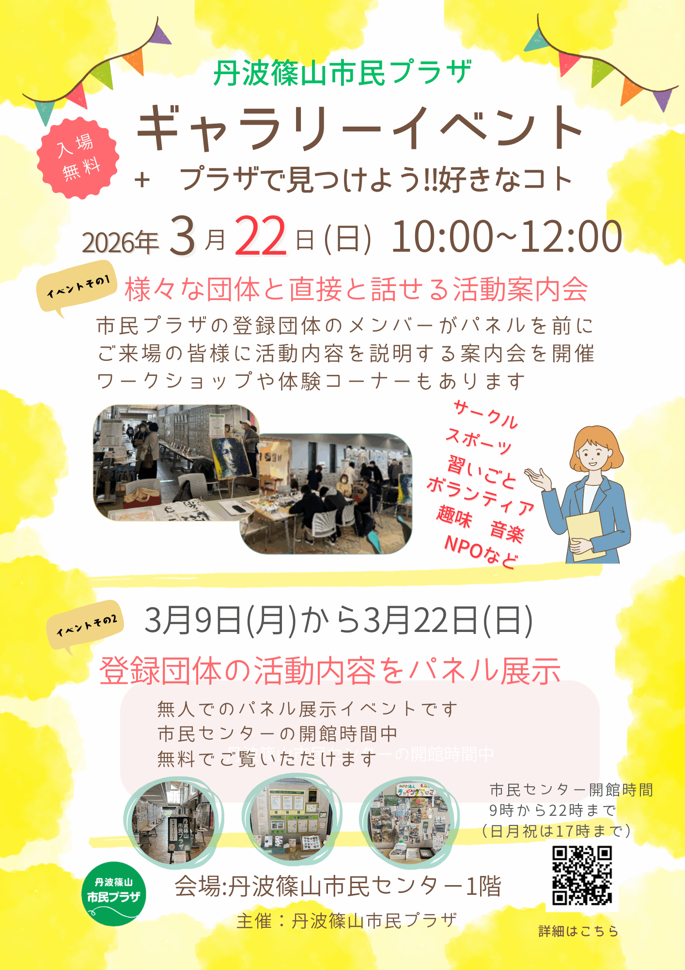 活動案内会:展示の最終日、展示パネルの前で、来場者に活動内容をご説明いただけます。